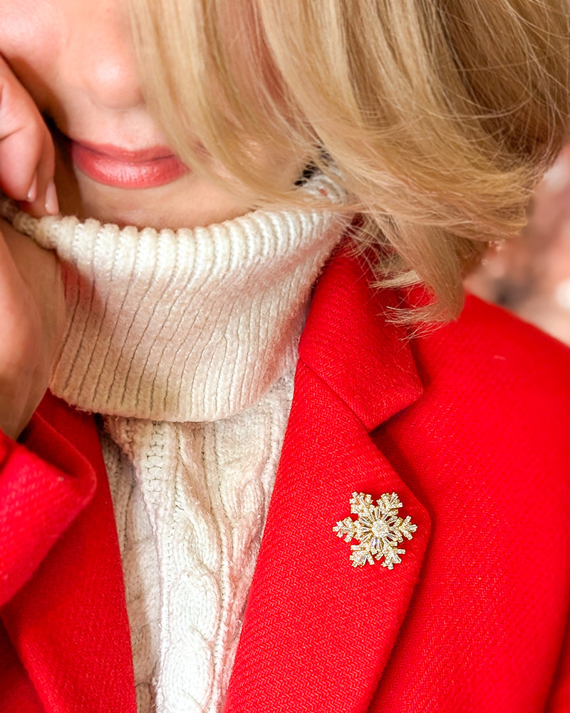 Ca o poezie de iarna prinsa intr-o raza de lumina, aceasta brosa in forma de fulg de nea imbina eleganta clasica cu magia miscarii. Realizata din alama si impodobita cu cristale zirconiu stralucitoare, nu este doar o bijuterie – este o amuleta a calmului, o invitatie la joaca si rafinament.