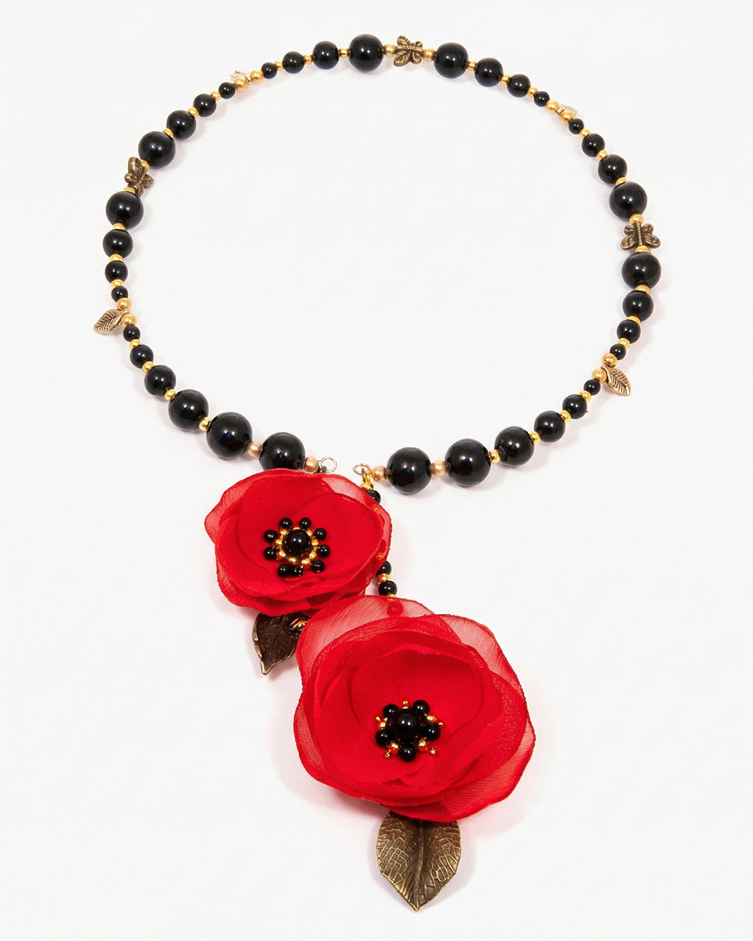 - Colier asimetric floral cu maci rosii