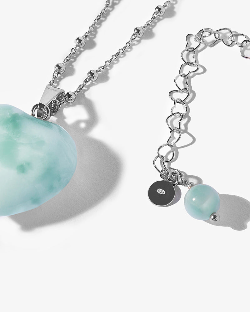 Angelite Tahiti este genul de colier pe care il porti fara sa-l simti, dar fara sa-l uiti - o bijuterie plina de farmec. Pandantivul in forma de inima, sculptat din piatra naturala angelit, are o culoare linistitoare, ca o plaja pustie scaldata in briza oceanului. Lucrat cu atentie in Romania, din componente hipoalergenice, acest colier e usor de iubit si de purtat. Lejer si versatil, este bijuteria care te insoteste in fiecare zi si ramane mereu in ton cu starea ta. Discret, dar cu suflet.