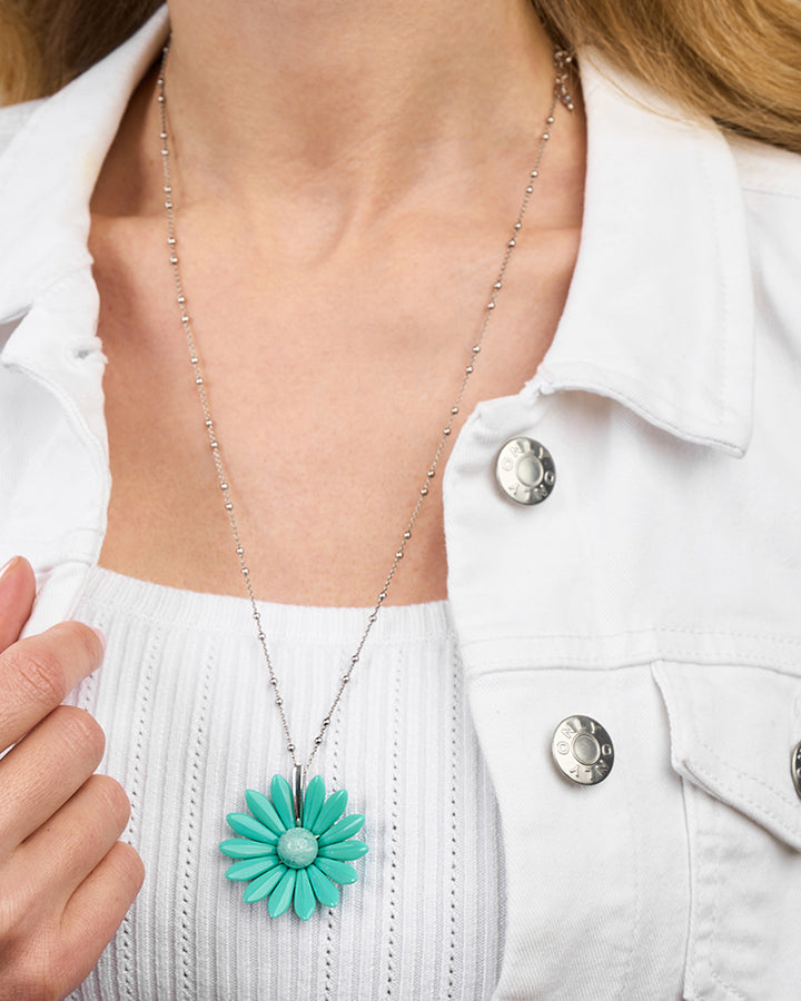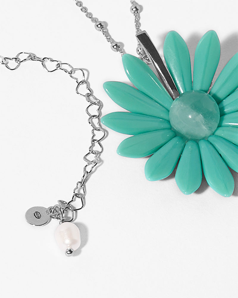 My Daisy Angelite - Colier Floare, Margareta, Argint 925, Piatra Naturala Angelit