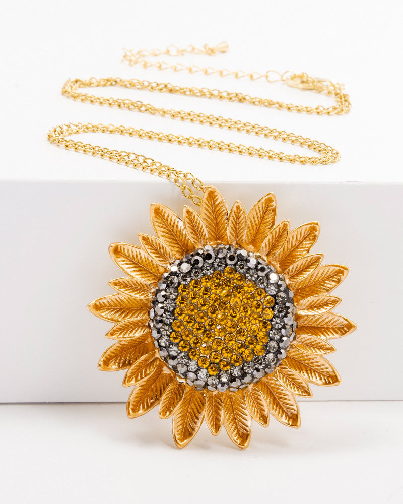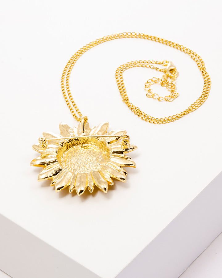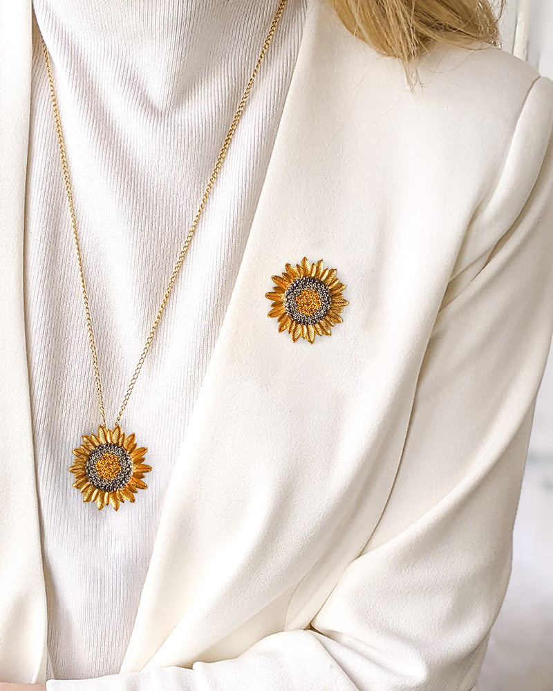 Sunflower Love - Brosa / Pandantiv Floarea Soarelui, Cu Colier Lant